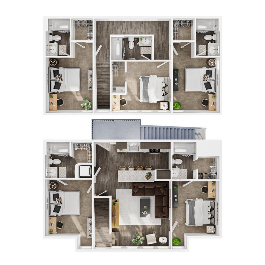 Apartment Model: 4BR/4BA - Townhome Skyline$1,2694 Bedroom, 4 Bath, 2591 sq ftAvailable Now![]()