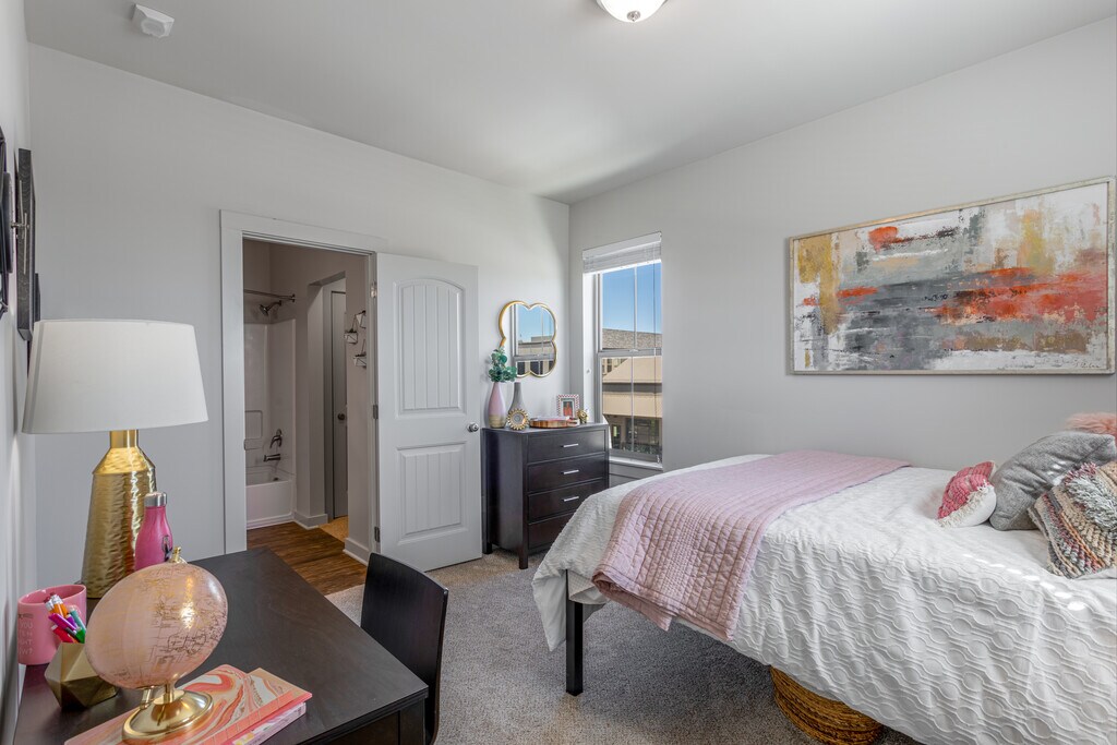 The Arrow Townhomes & Flats is a new student community with luxury flats & townhome apartments in Bozeman, MT. We offer resort-style amenities for the students of Montana State University and are located near the MSU campus. We offer 1, 2 and 3 bedroom flats and 4 and 5 bedroom townhomes. Every bedroom comes with a private bathroom. Amenities include a 24-hour clubhouse with a fully equipped gym, sauna, steam room, and resort-style pool with spas. We also have a game room with flat screen tv's, arcade games, a pingpong table, a pool table, and shuffleboard. Come check out our Bozeman apartments!