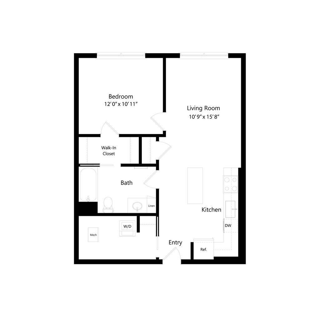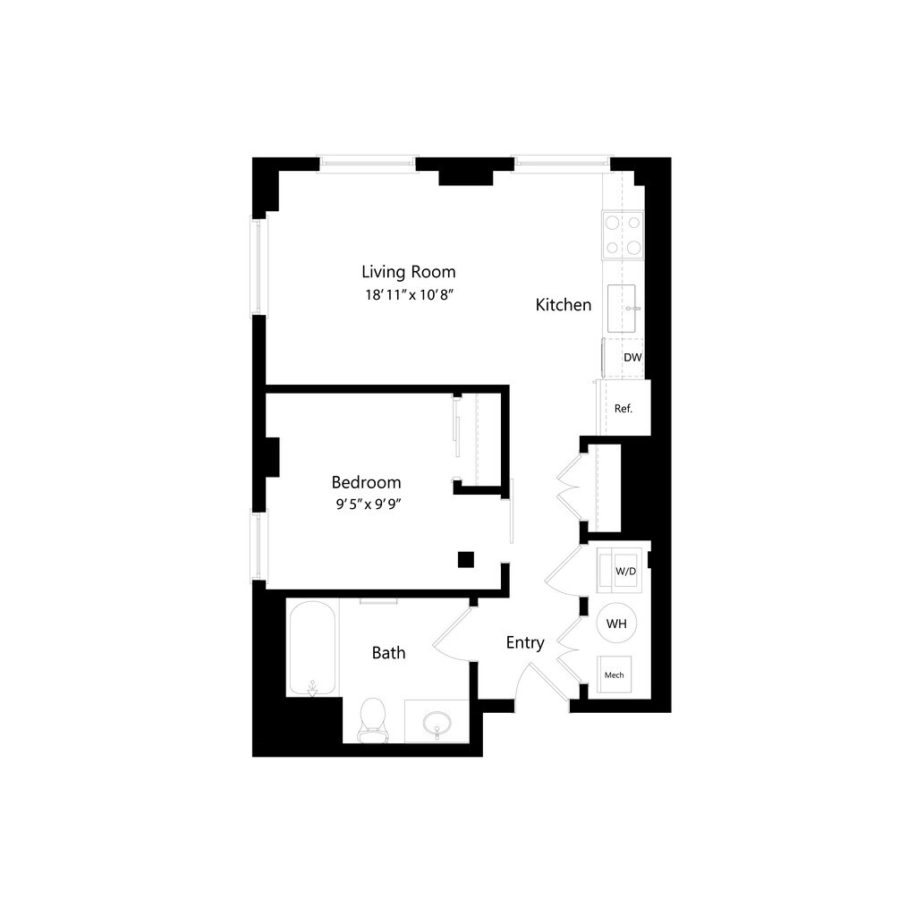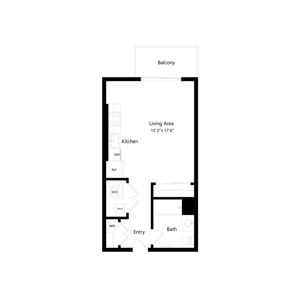 S1A - Floorplan 1 Apartment Unit: 408Apartment Model: S1A$2,475Studio, 1 Bath, 500 sq ftAvailable November 5, 20251 Bedroom