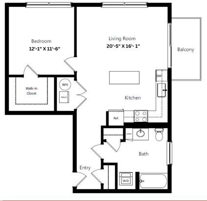 1 Bed, 1 Bath, 554-598 sq ftModel Gallery