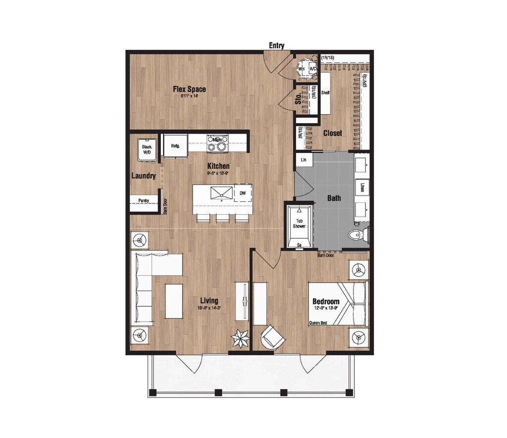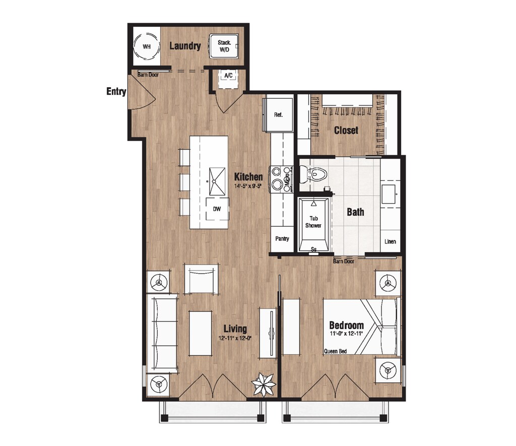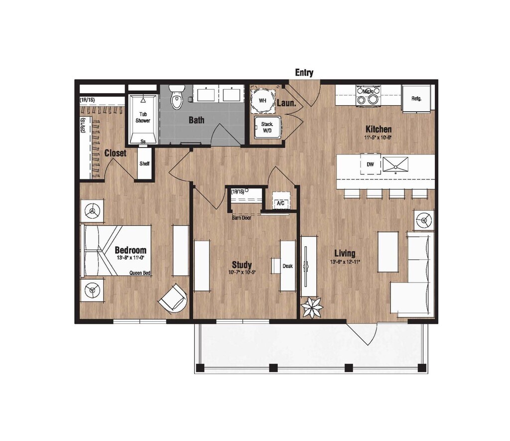 Apartment Model: A1From $1,4671 Bedroom, 1 Bath, 619 sq ftAvailable NowFloorplansPhotos![]()