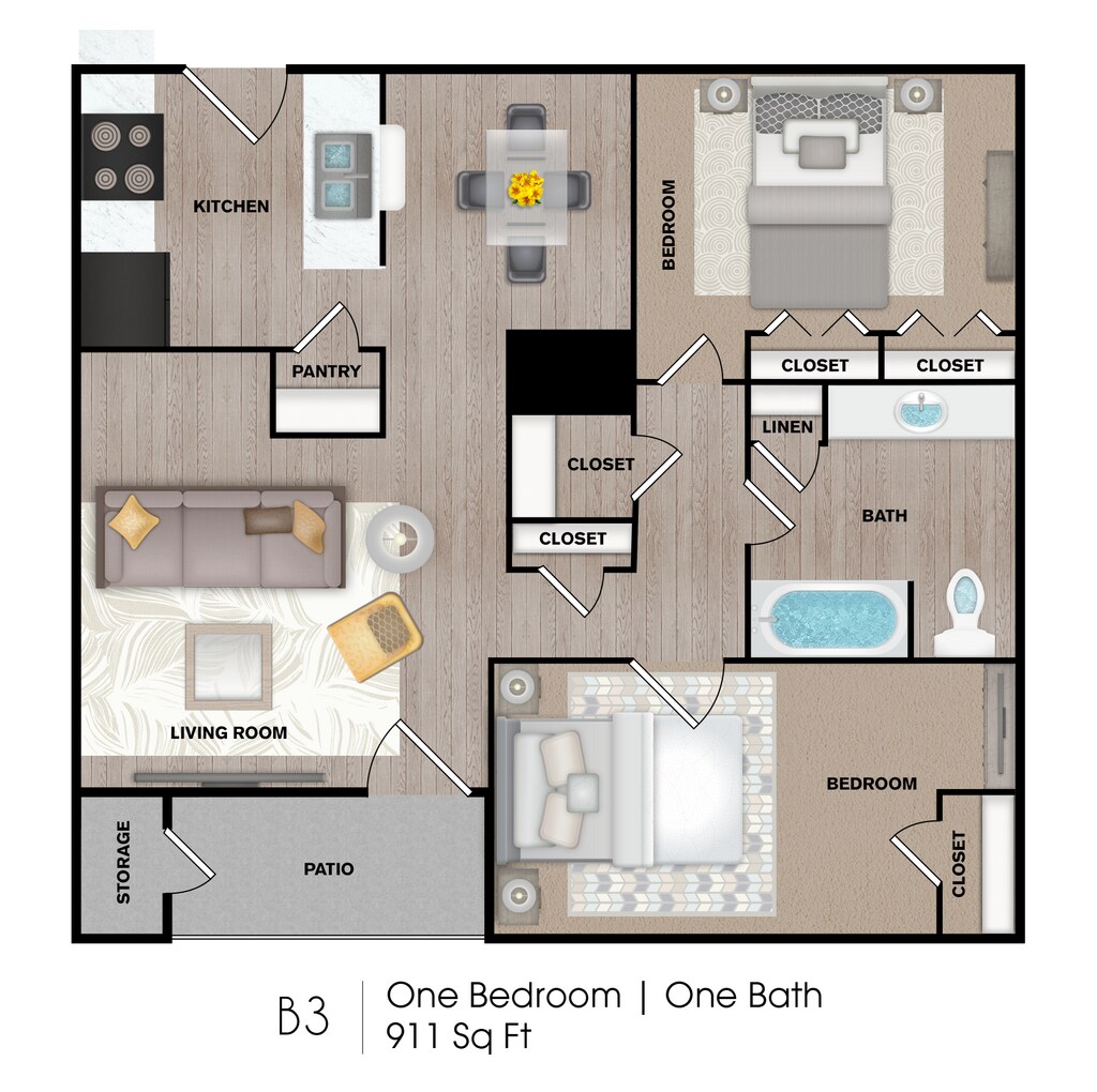 1 Bed, 1 Bath, 665 sq ftAvailable NowModel Gallery