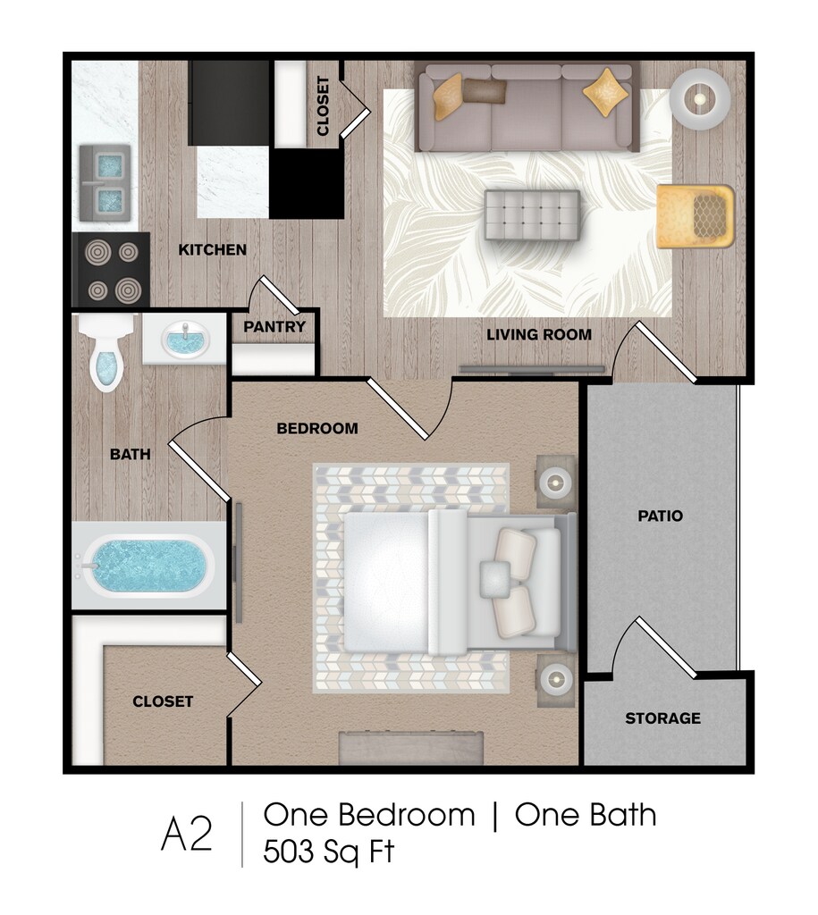 1 Bed, 1 Bath, 503 sq ftAvailable NowModel Gallery