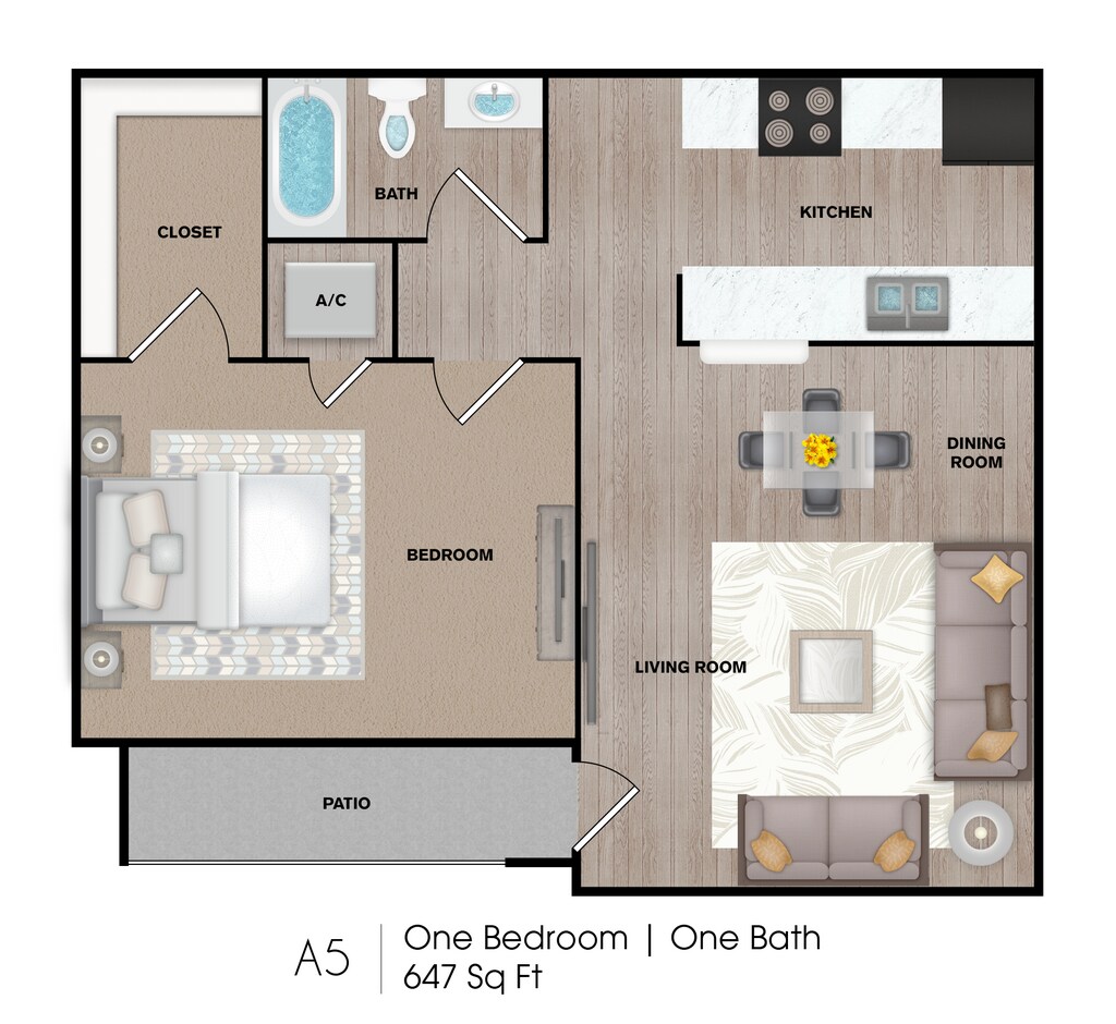 Apartment Model: 1 bdrm1 Bedroom, 1 Bath, 647 sq ftAvailable Now![]()