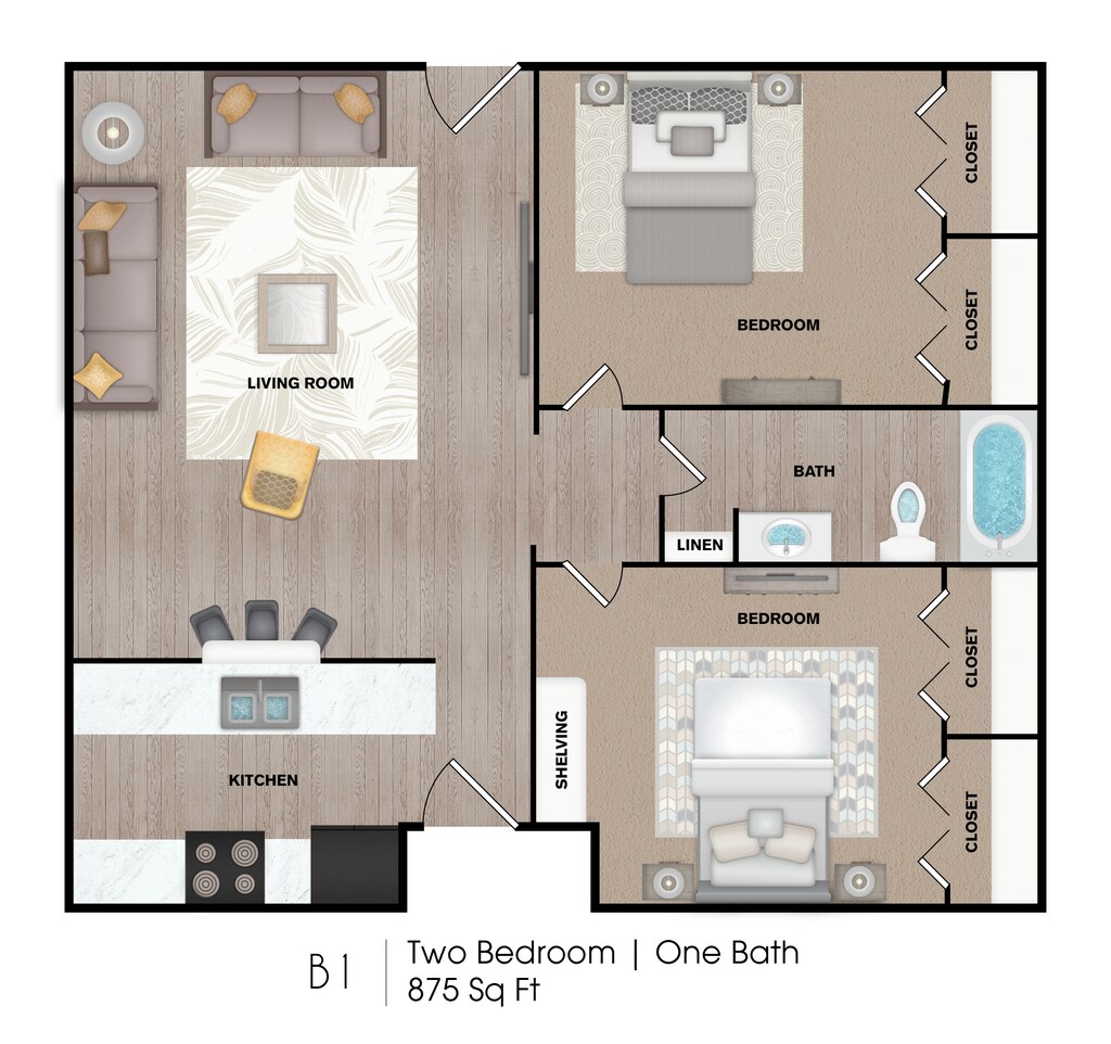 1 Bed, 1 Bath, 476 sq ftAvailable NowModel Gallery