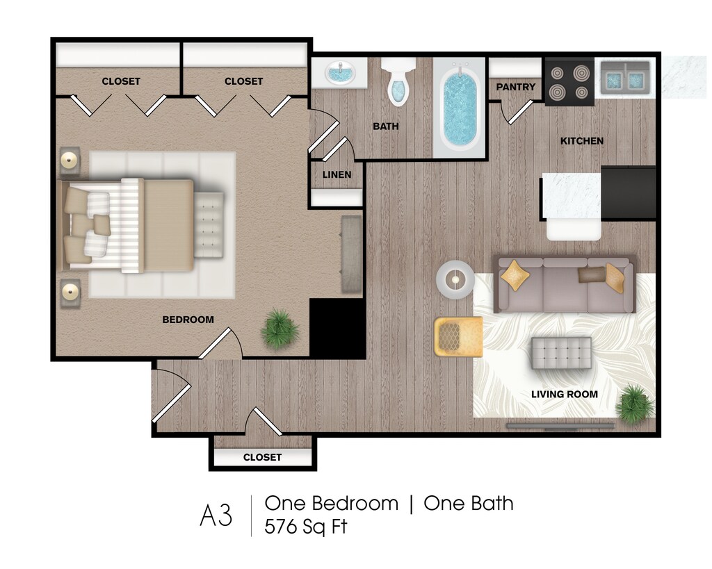 Apartment Model: 1 bdrm1 Bedroom, 1 Bath, 576 sq ftAvailable Now![]()