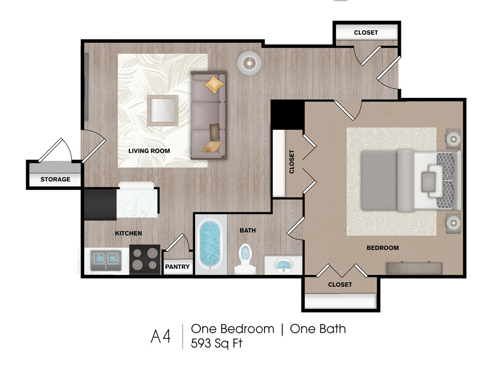 1 Bed, 1 Bath, 593 sq ftAvailable NowModel Gallery