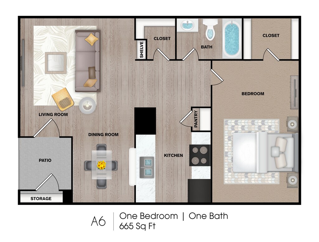 Apartment Model: 1 bdrm1 Bedroom, 1 Bath, 665 sq ftAvailable Now![]()