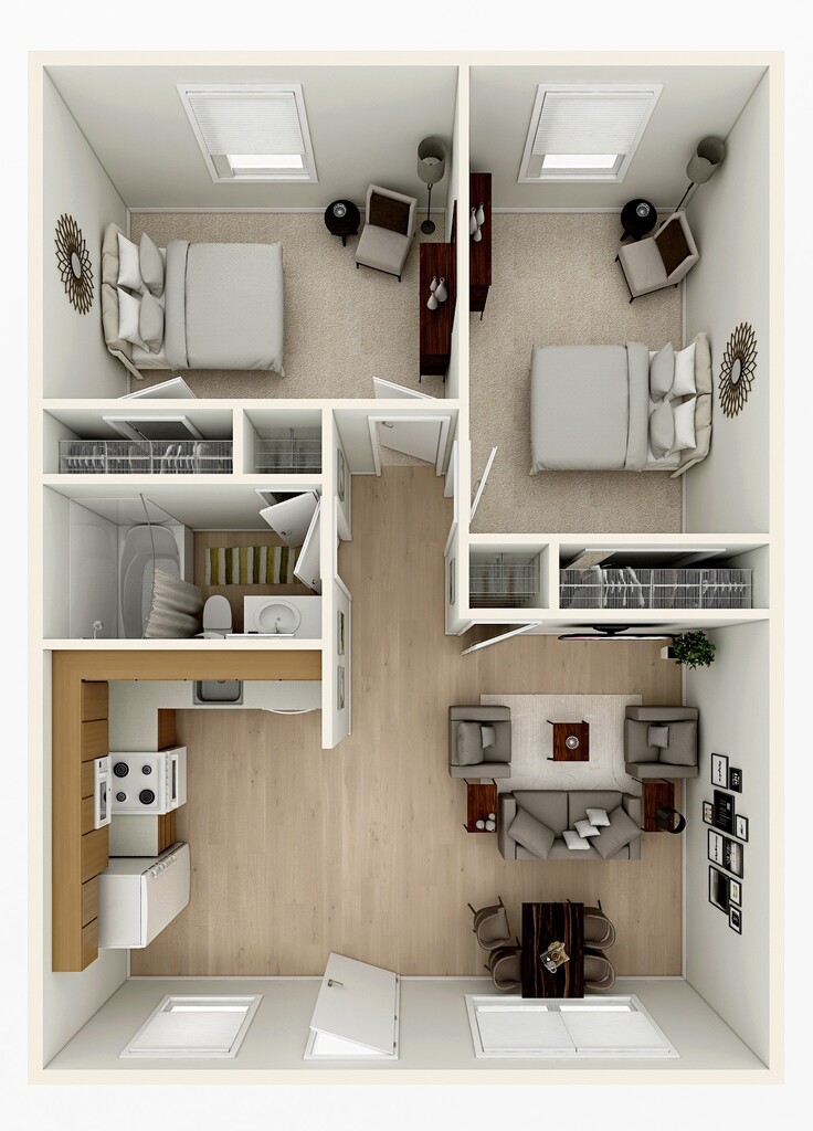 1 Bed, 1 Bath, 475 sq ftModel Gallery