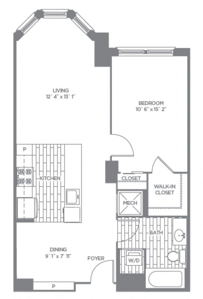 Studio, 1 Bath, 597 sq ftAvailable NowModel Gallery