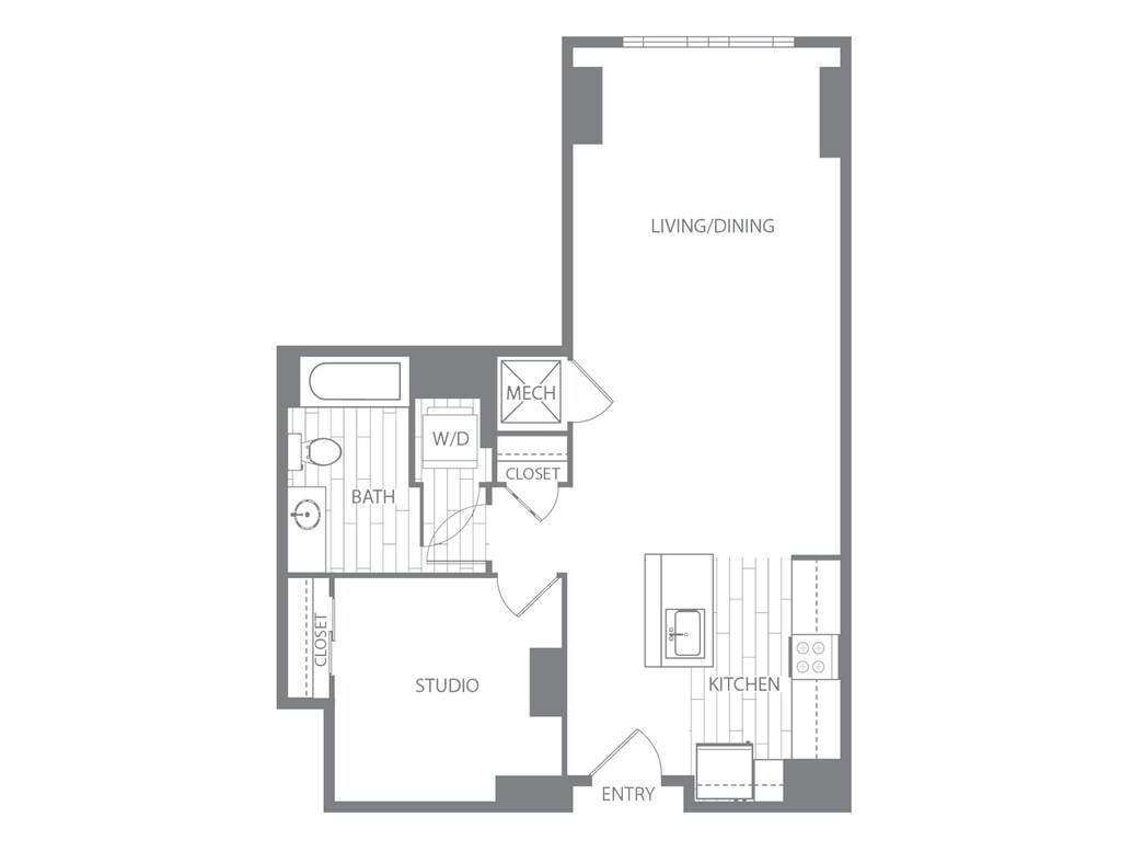 Studio, 1 Bath, 715 sq ftLargest StudioThis is the largest Studio at this PropertyModel Gallery