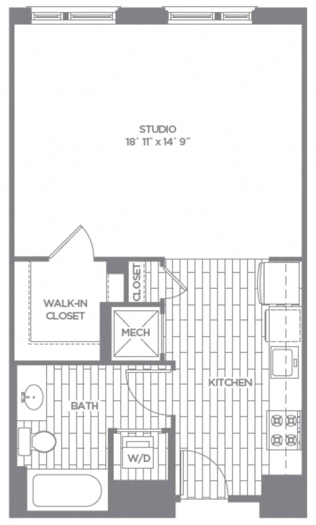 S3 - Floorplan 1 Apartment Unit: 307-1Apartment Model: S3$2,308Studio, 1 Bath, 597 sq ftAvailable NowFloorplan S1b