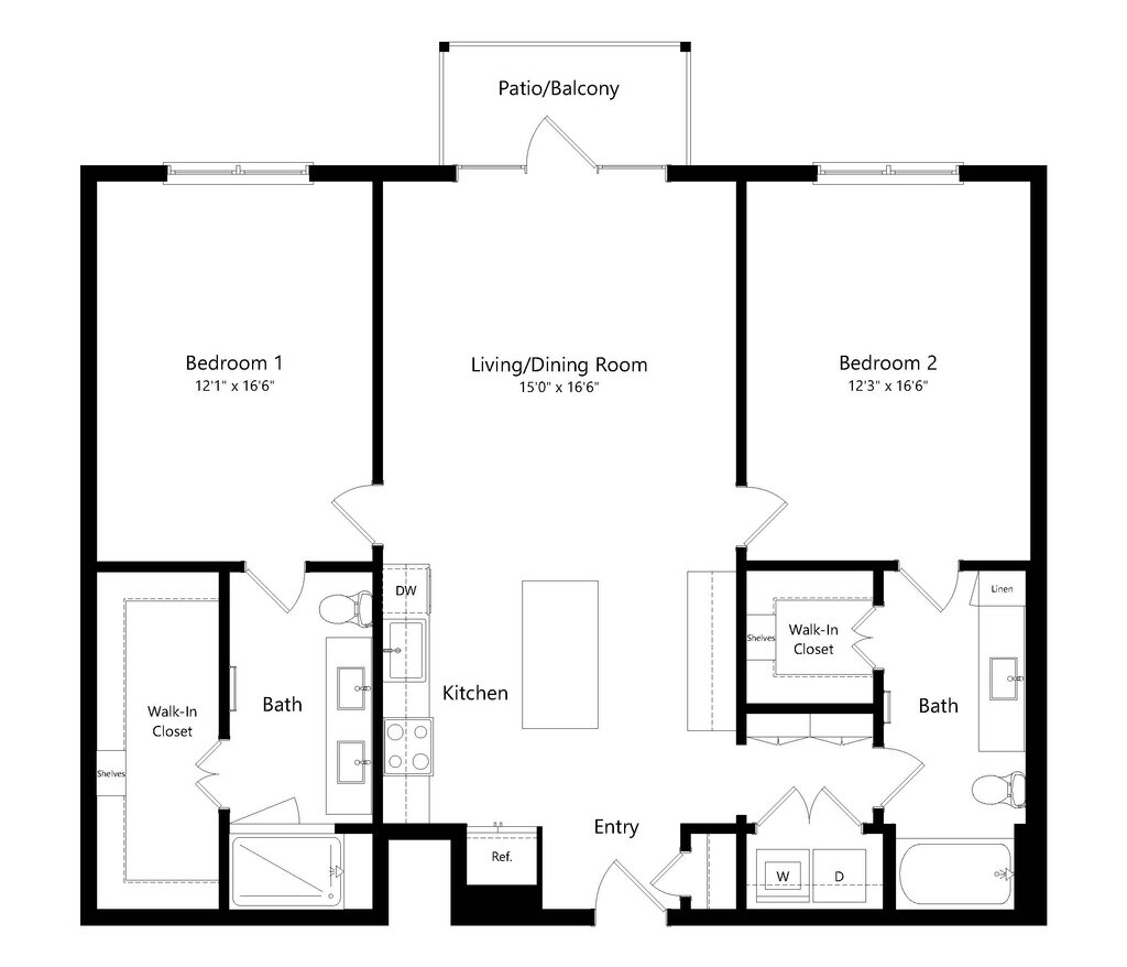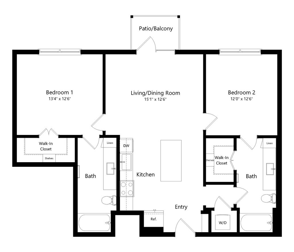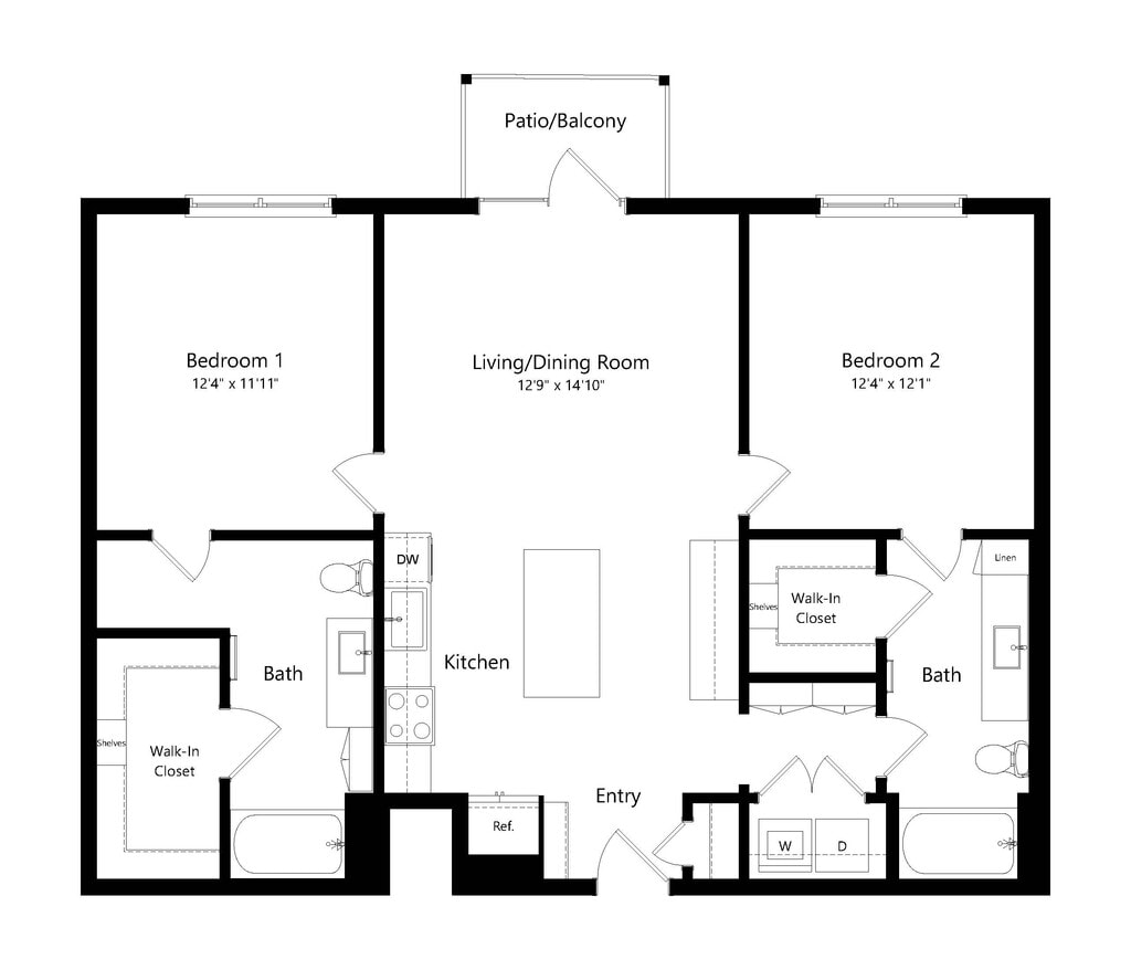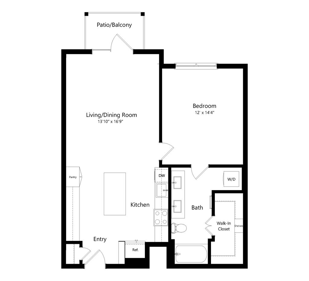 1 Bed, 1 Bath, 752 sq ftAvailable NowModel Gallery