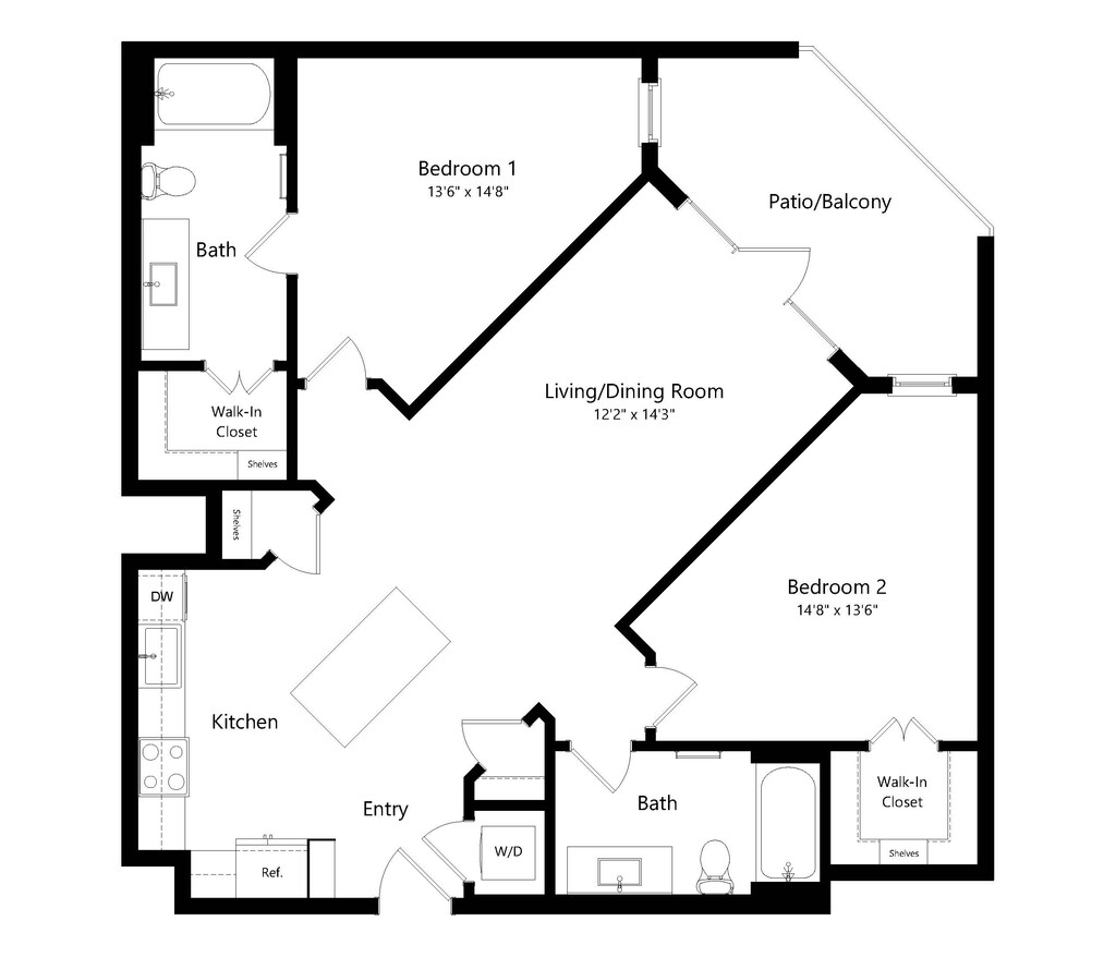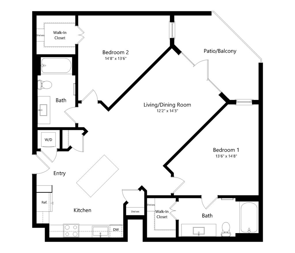 1 Bed, 1 Bath, 814 sq ftAvailable NowModel Gallery