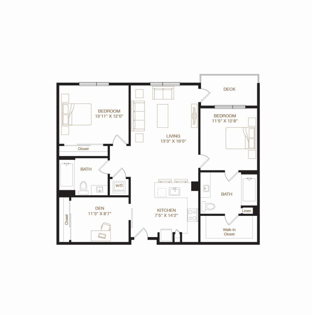1 Bed, 1 Bath, 733 sq ftAvailable NowModel Gallery
