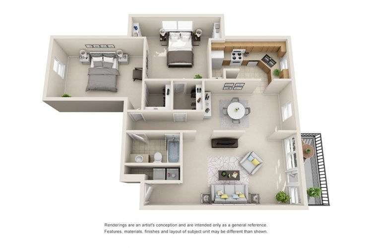2 Beds, 2.5 Baths, 1430 sq ftAvailable NowLargest 2 BedroomThis is the largest 2 Bedroom at this PropertyModel Gallery