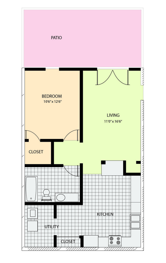 2 Beds, 1 Bath, 1100 sq ftAvailable NowModel Gallery