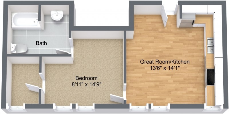 1 Bed, 1 Bath, 495 sq ftAvailable NowModel Gallery