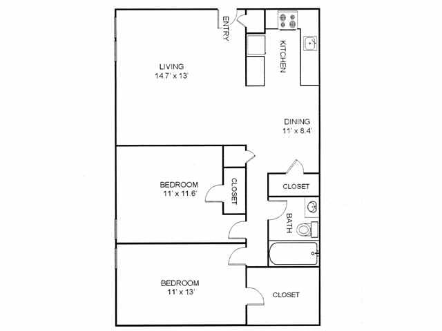2 Beds, 1 Bath, 900 sq ftAvailable NowModel Gallery