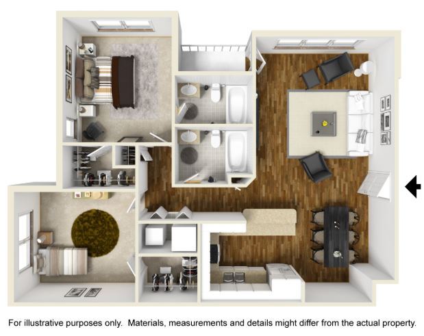 2 Beds, 2 Baths, 1109-1225 sq ftAvailable NowAvailability Details