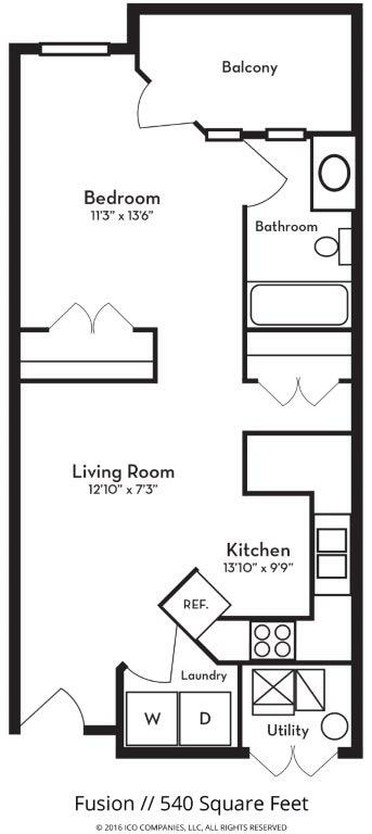 Fusion - Floorplan 2 Apartment Unit: A319Apartment Model: Fusion$1,219Studio, 1 Bath, 540 sq ftAvailable February 9, 2026The Affinity