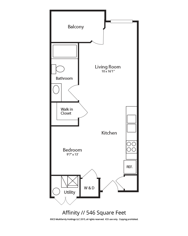 Apartment Model: The AffinityCall For RatesStudio, 1 Bath, 546 sq ftUnavailableFloorplansPhotos![]()