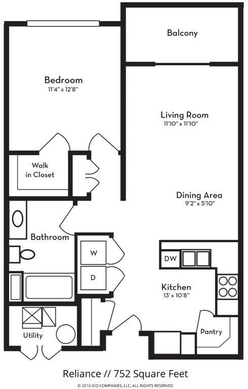 Apartment Model: RelianceFrom $1,2591 Bedroom, 1 Bath, 752 sq ftAvailable NowFloorplansPhotos![]()