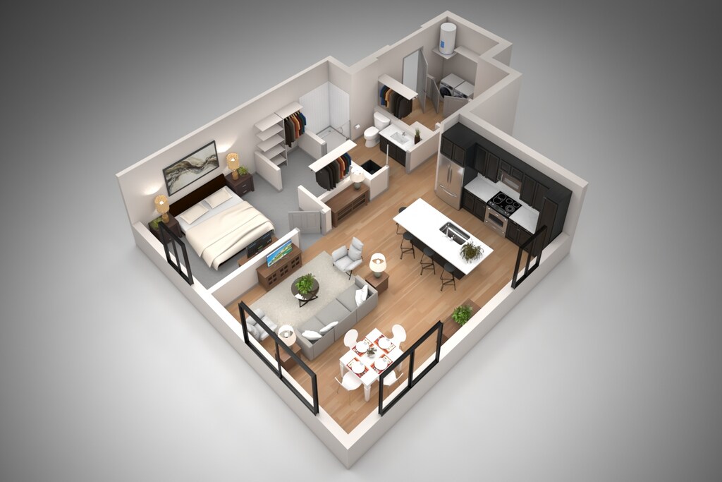 1 Bed, 1 Bath, 762 sq ftModel Gallery