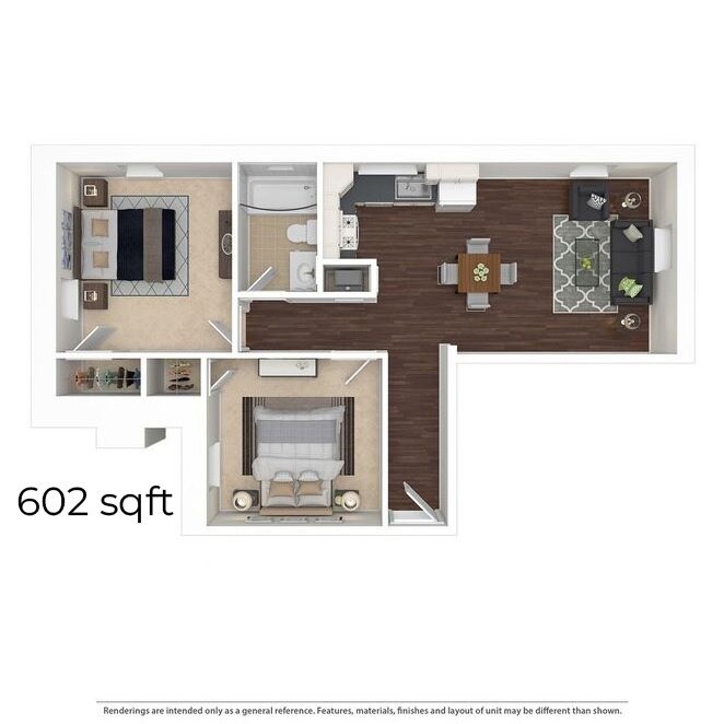 2 Beds, 1 Bath, 518-602 sq ftModel Gallery