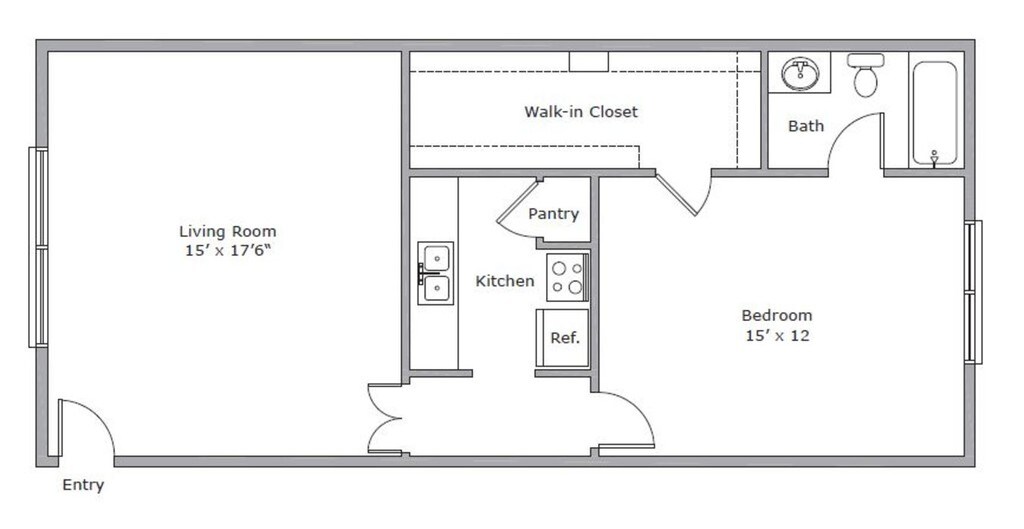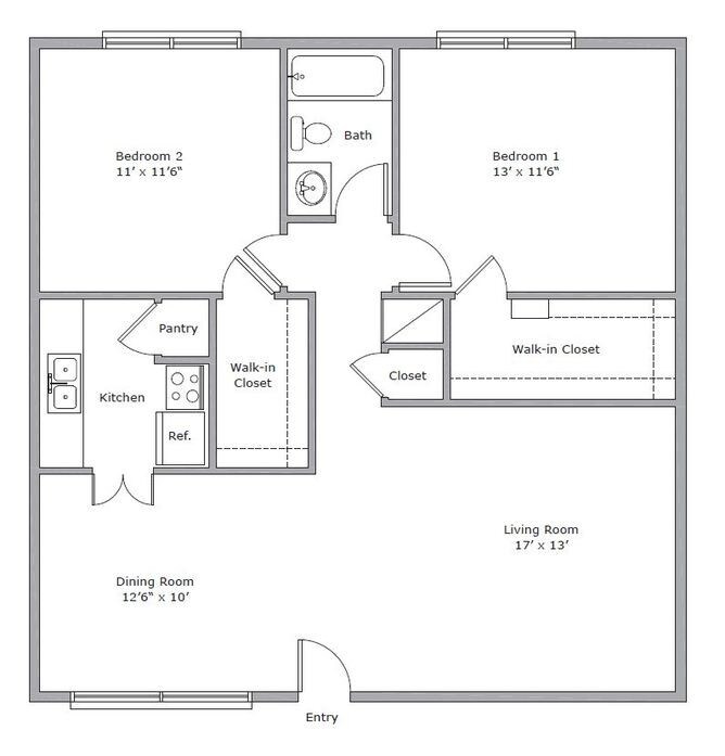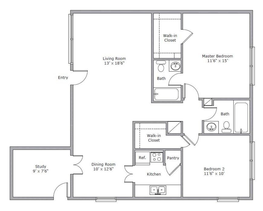 B1 - Floorplan 2 Apartment Unit: 11Apartment Model: B1$1,3152 Bedroom, 1 Bath, 950 sq ftAvailable NowFloorplan B2