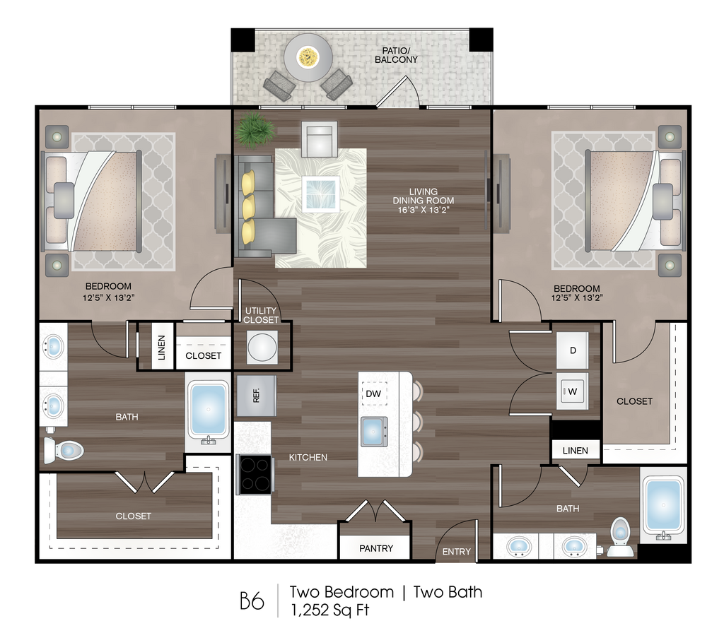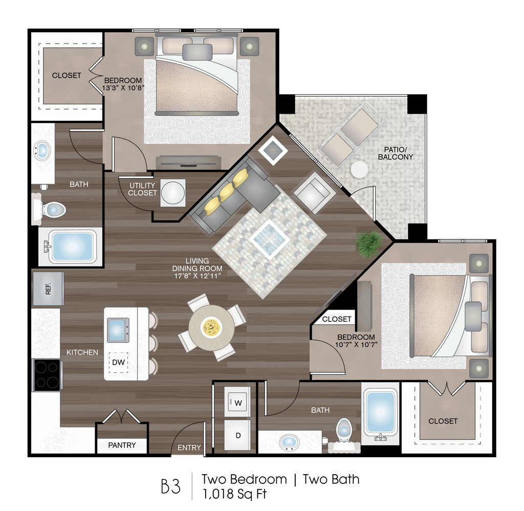 Apartment Model: A3From $1,3241 Bedroom, 1 Bath, 634 sq ftAvailable Now![]()