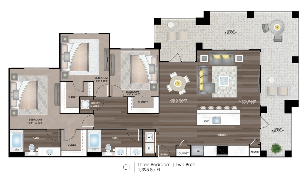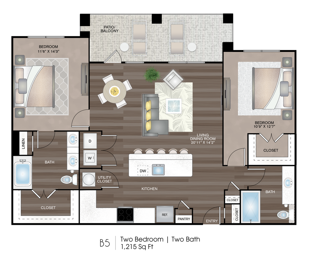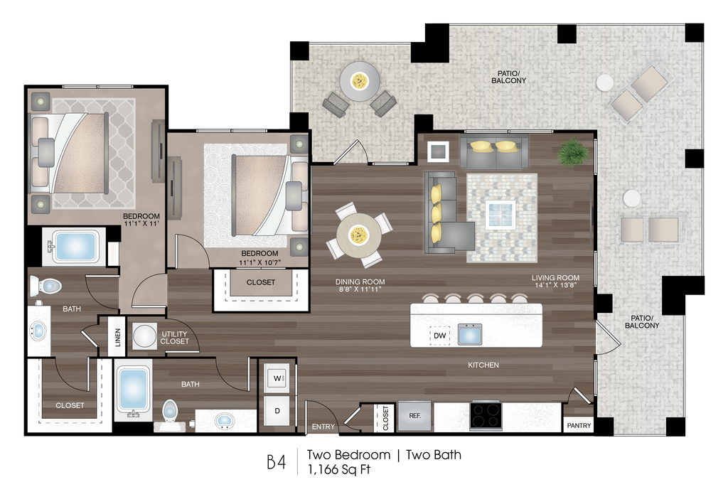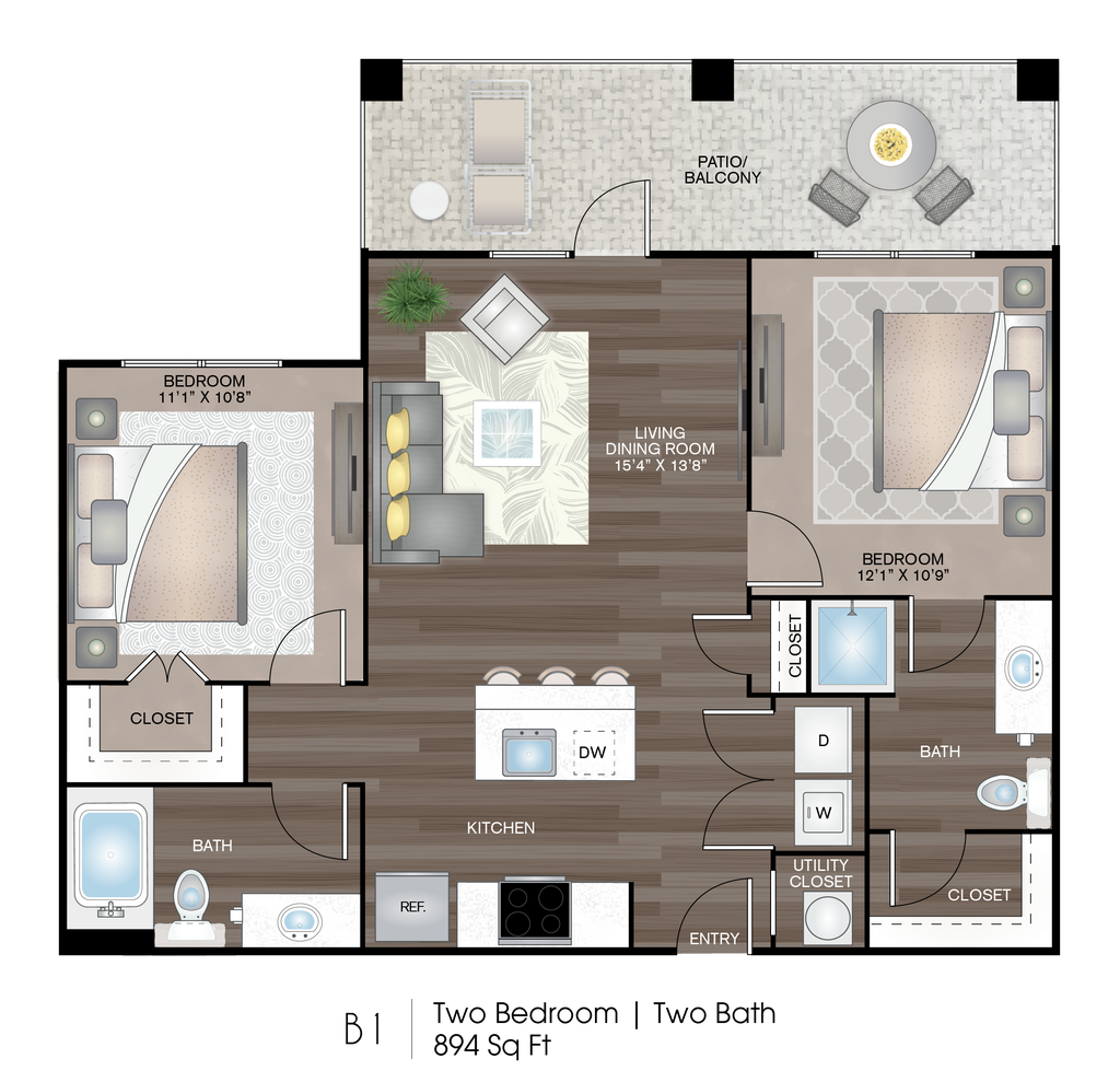 1 Bed, 1 Bath, 705 sq ftAvailable NowModel Gallery