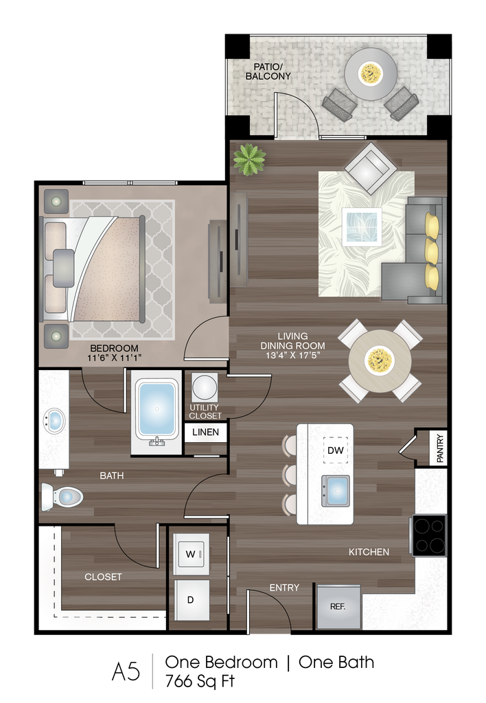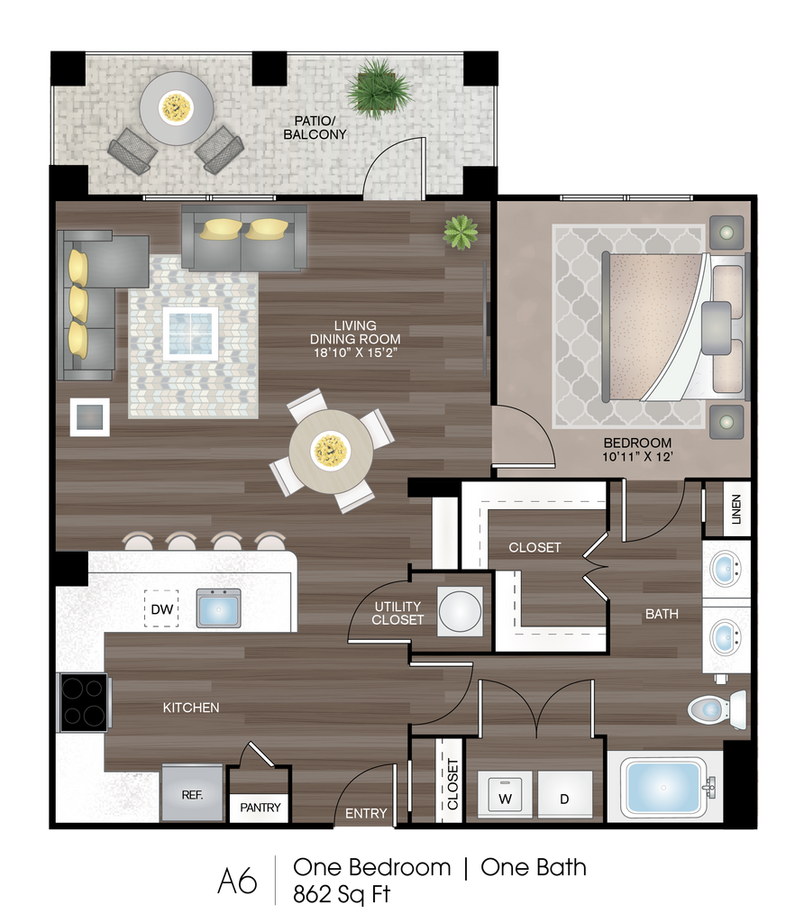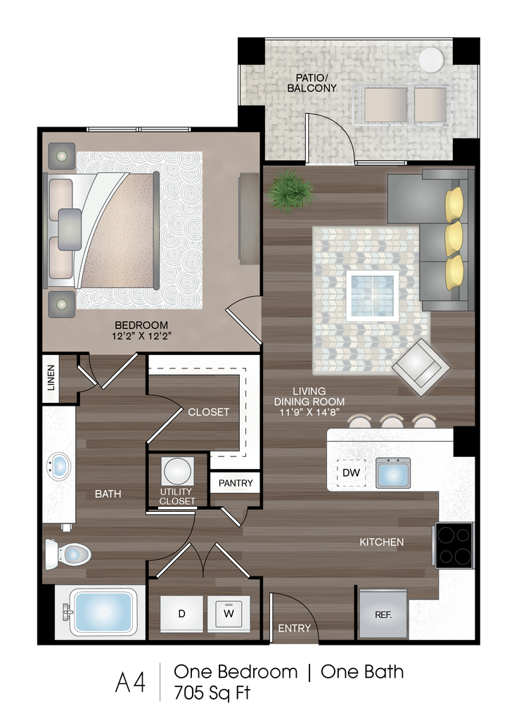 Apartment Model: A4From $1,4251 Bedroom, 1 Bath, 705 sq ftAvailable NowFloorplansPhotos![]()