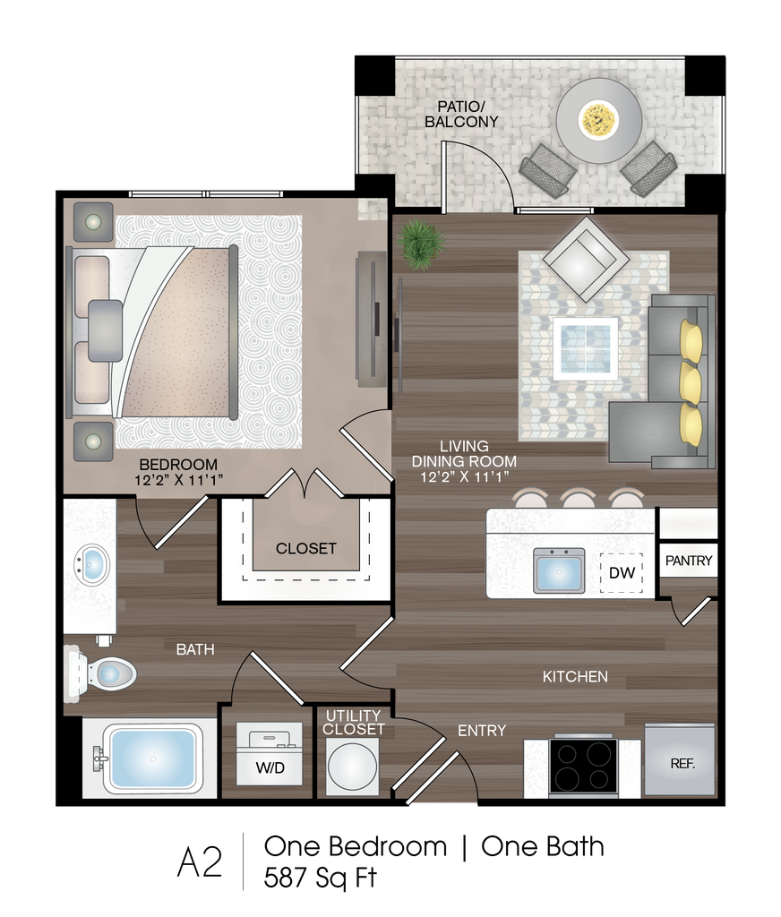 Apartment Model: A2From $1,2951 Bedroom, 1 Bath, 587 sq ftAvailable Now![]()
