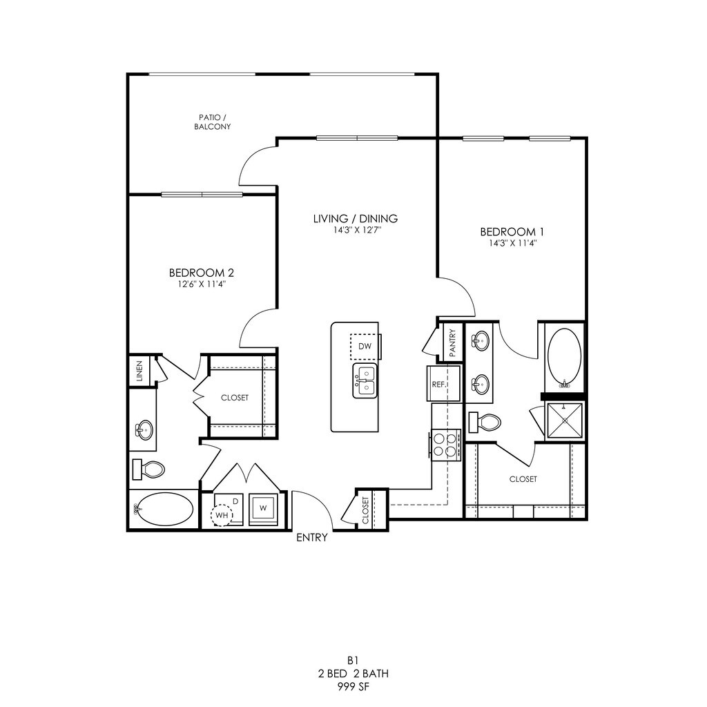 Apartment Model: B22 Bedroom, 2 Bath, 1158 sq ftAvailable NowFloorplansPhotos![]()