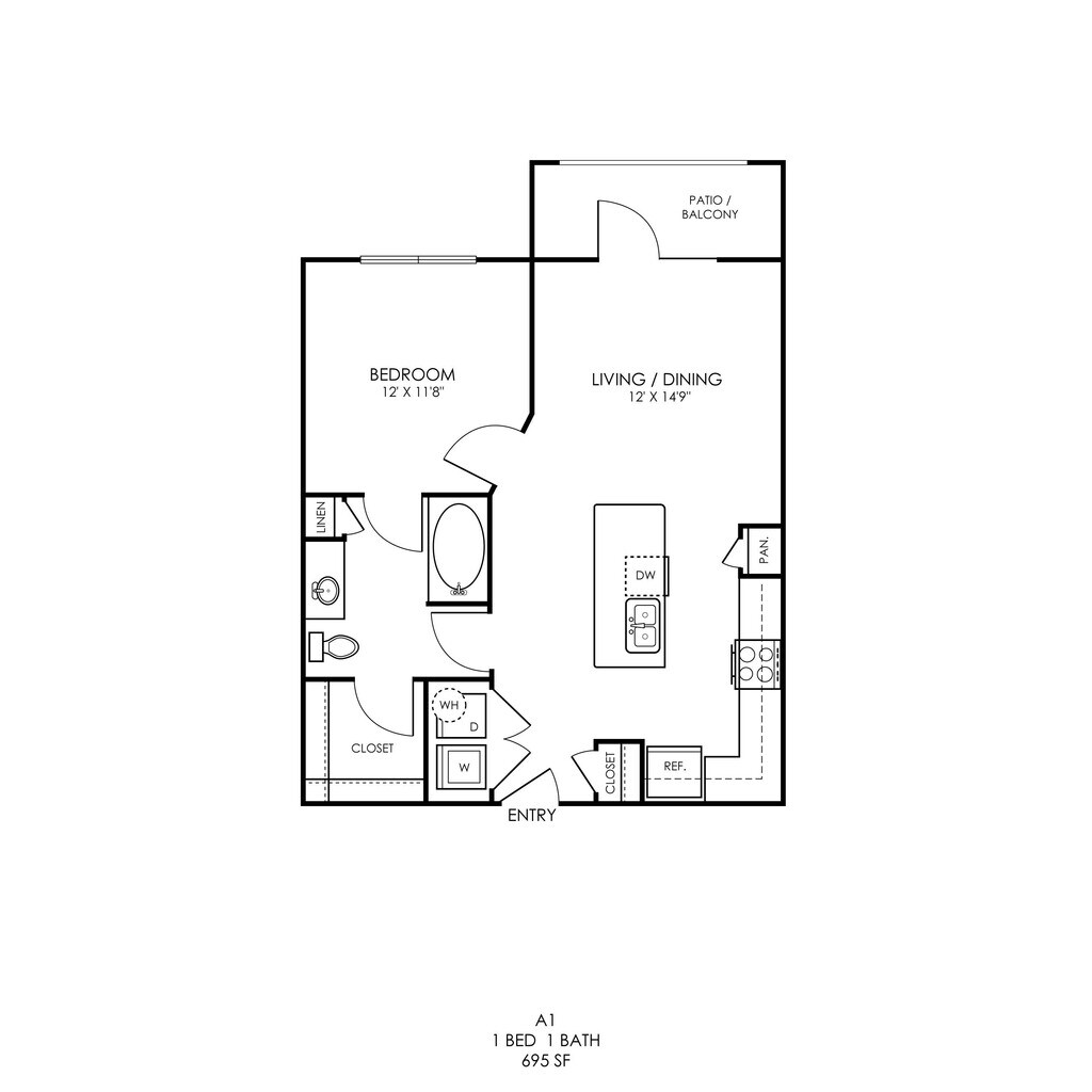 Apartment Model: A11 Bedroom, 1 Bath, 695 sq ftAvailable NowFloorplansPhotos![]()