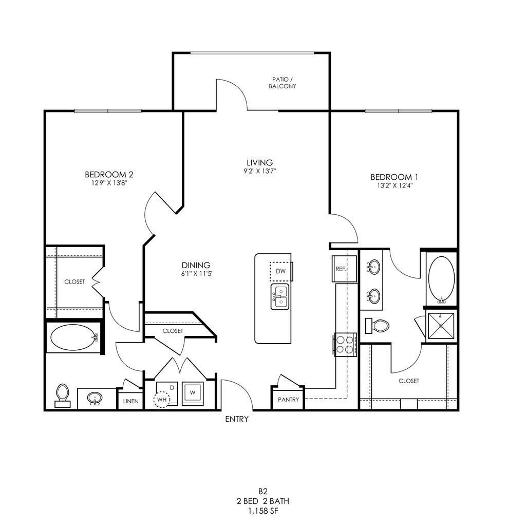 B2 - Floorplan 2 Apartment Unit: 1214Apartment Model: B22 Bedroom, 2 Bath, 1158 sq ftAvailable NowApartment Unit: 4308Apartment Model: B22 Bedroom, 2 Bath, 1158 sq ftAvailable NowApartment Unit: 4208Apartment Model: B22 Bedroom, 2 Bath, 1158 sq ftAvailable NowFloorplan B3