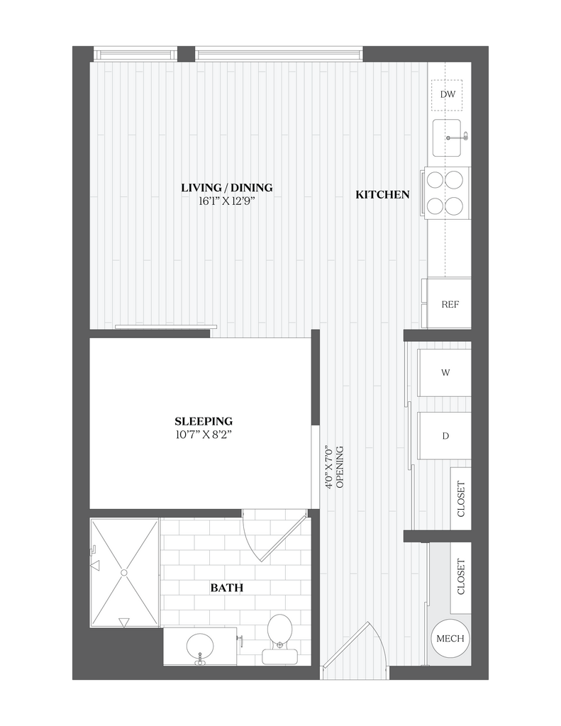 Studio, 1 Bath, 490 sq ftPlus FeesAvailable NowModel Gallery