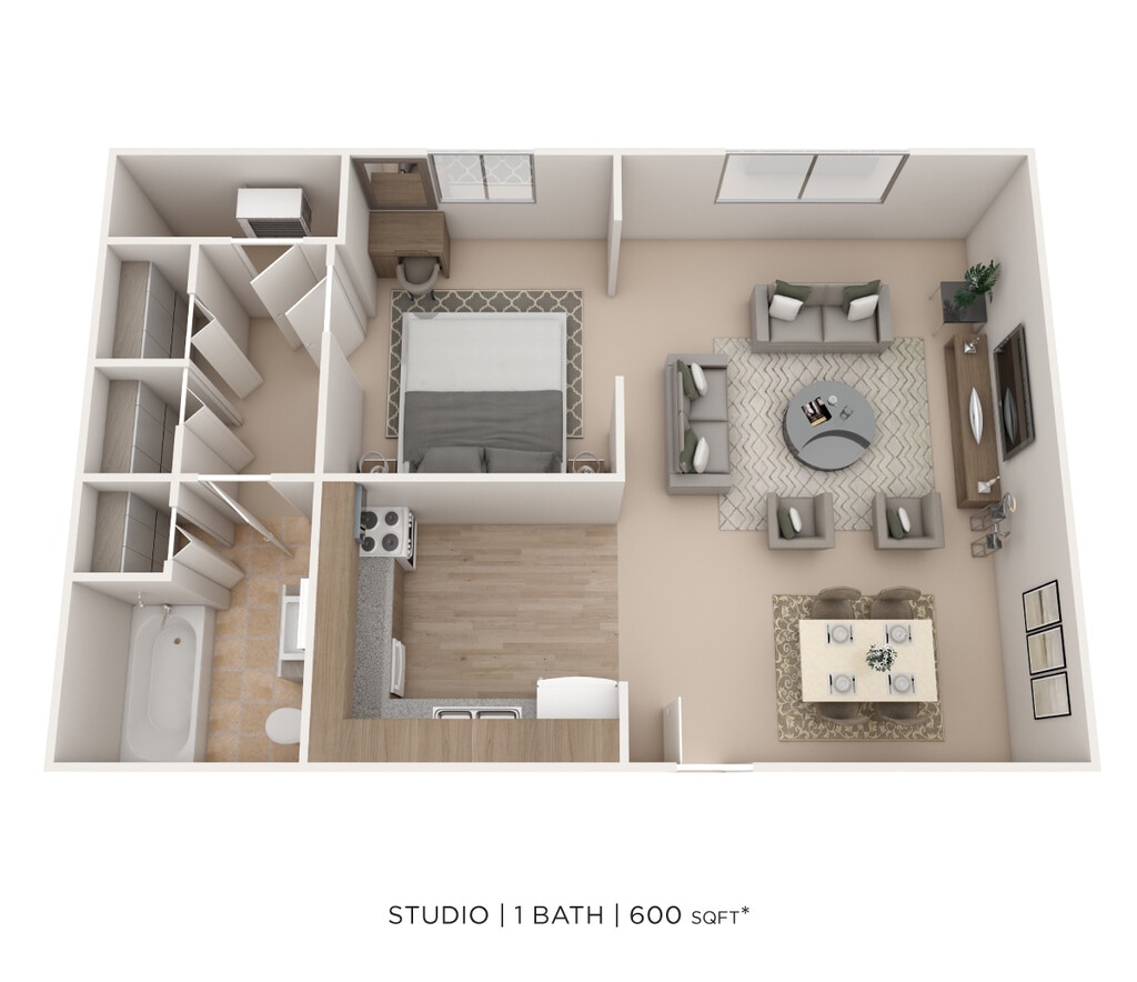 Studio, 1 Bath, 600 sq ftModel Gallery