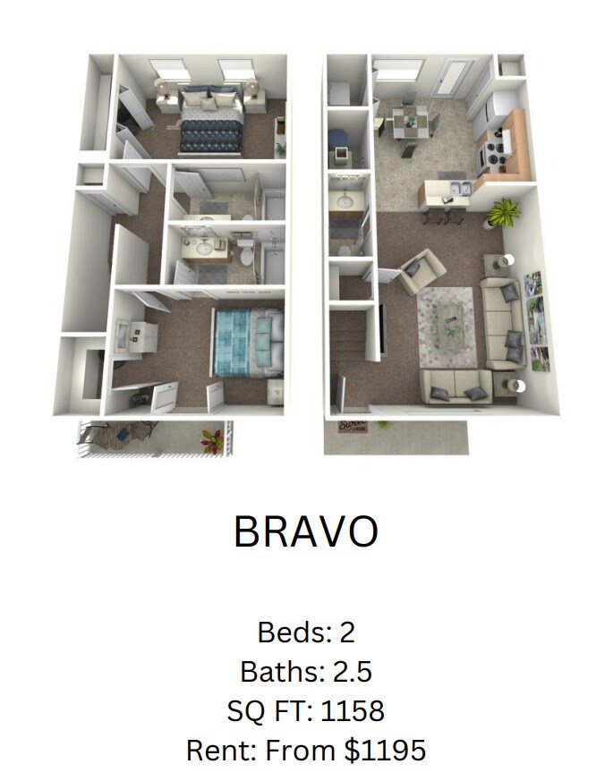 Apartment Model: Bravo$1,3852 Bedroom, 2.5 Bath, 1158 sq ftUnavailable![]()