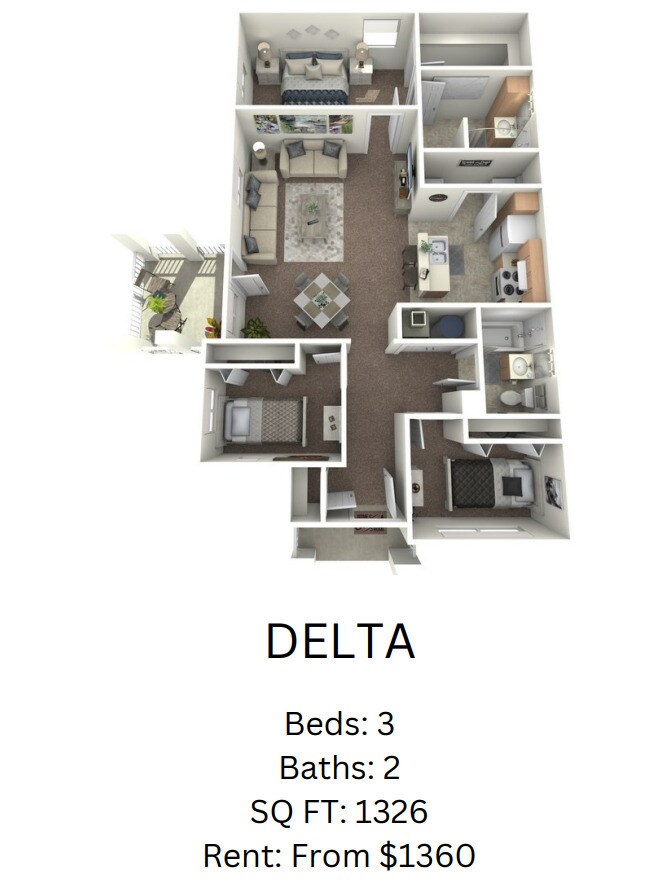 3 Beds, 2 Baths, 1326 sq ftLargest 3 BedroomThis is the largest 3 Bedroom at this PropertyModel Gallery