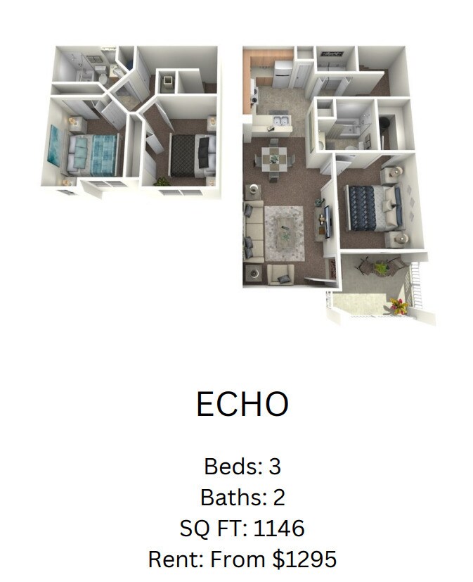 Apartment Model: Echo$1,4553 Bedroom, 2 Bath, 1146 sq ftAvailable Now![]()