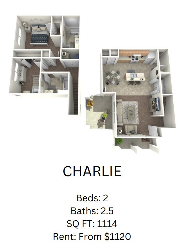Apartment Model: Charlie$1,3652 Bedroom, 2.5 Bath, 1114 sq ftUnavailable![]()