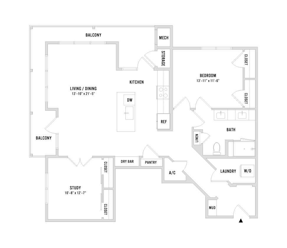1 Bed, 1 Bath, 606 sq ftAvailable NowModel Gallery