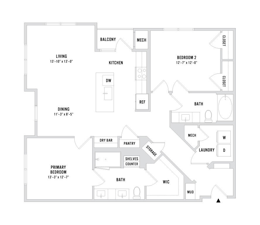 Apartment Model: A2From $1,5751 Bedroom, 1 Bath, 677 sq ftAvailable Now![]()