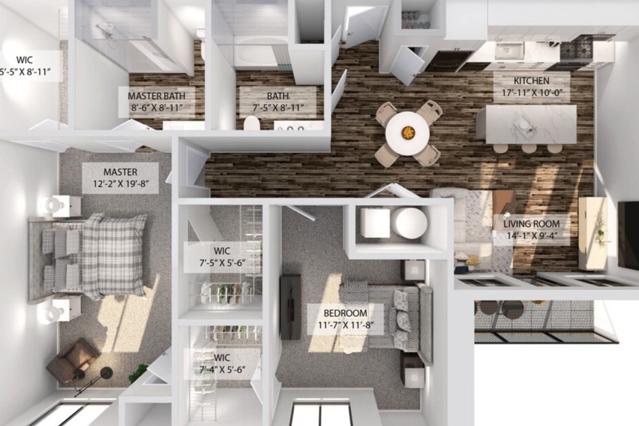 1 Bed, 1.5 Baths, 1050 sq ftModel Gallery