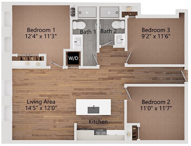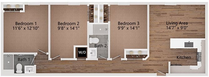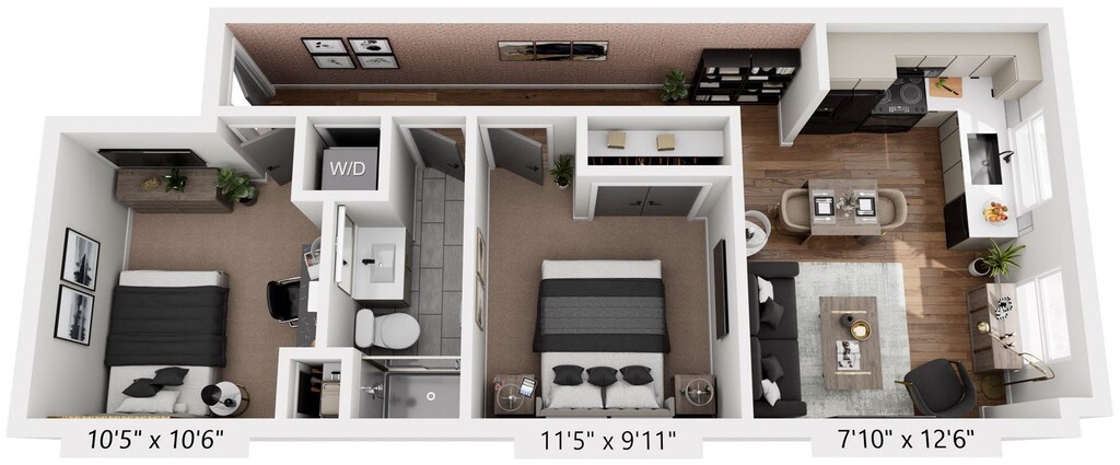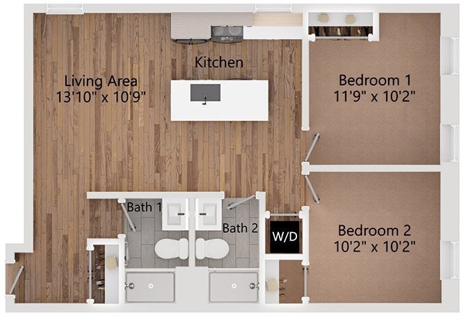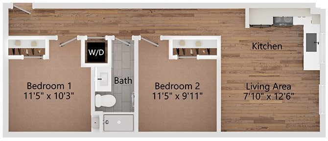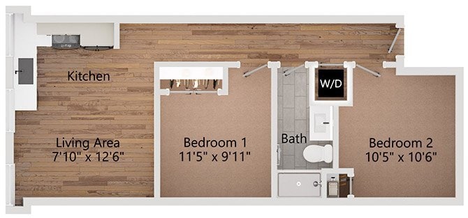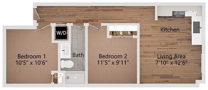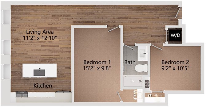 2 Beds, 1 Bath, 576 sq ftAvailable NowModel Gallery
