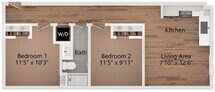 2 Beds, 1 Bath, 594 sq ftPlus FeesAvailable NowModel Gallery