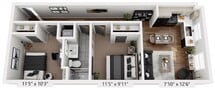 2 Beds, 1 Bath, 576 sq ftPlus FeesAvailable NowModel Gallery