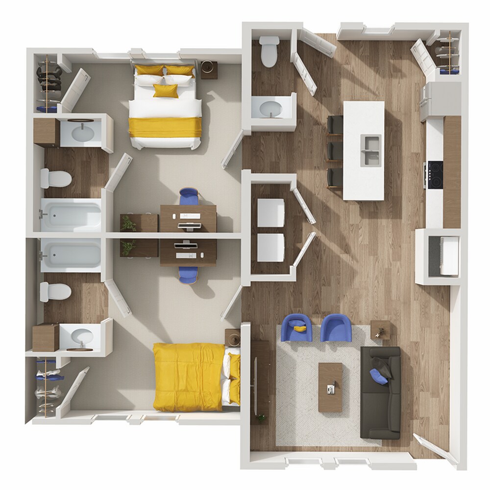 Apartment Model: D14 Bedroom, 4.5 Bath, 1790 sq ftAvailable August 21, 2026D1 - Floorplan 1 Apartment Unit: PrivateApartment Model: D14 Bedroom, 4.5 Bath, 1790 sq ftAvailable August 21, 2026Four Bedroom
